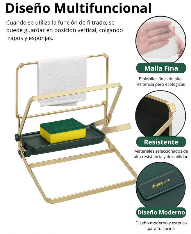 Respuesta 1: Este producto está diseñado para proporcionar una filtración eficiente de los alimentos al momento de lavar y proteger tus tuberías. Entre sus beneficios se incluyen la eliminación de olores y contaminantes, lo que resulta en una cocina más limpia y sin olores desagradables